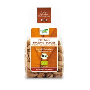 owoce pistacji właściwej (Pistacia vera), mają postać owalnego pestkowca przypominającego nieco oliwkę i należą do jednego z najbardziej odżywczych gatunków orzechów. Znane również jako zielone migdały. Ekologiczne pistacje prażone i solone, to wyśmienita samodzielna przekąska.