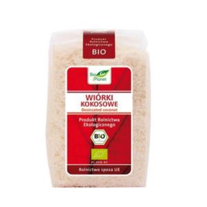Ekologiczne wiórki kokosowe uzyskiwane są z wysuszonego i startego miąższu orzecha kokosowego. Wiórki kokosowe polecamy głównie do wypieków cukierniczych, jako posypkę do deserów, sałatek owocowych i lodów.